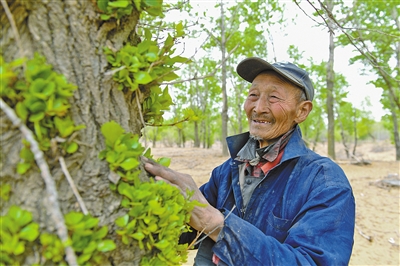 他承包的2300亩林地现成活胡杨、榆树、沙柳等7种树木10万多棵,据中国林业大学专家测算,折合资产1000万元以上。这片“林海”是“三北”防护林的一份子,“林海”年制氧气10万公斤,可提供一个成年人348天的供氧量。