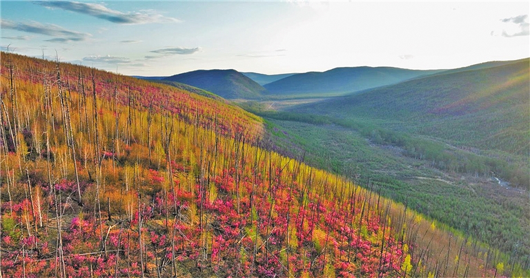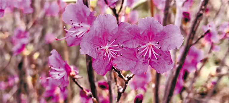 塞北春来晚,千山落紫霞。5月21日,2023内蒙古大兴安岭森林旅游系列活动启动。旅游达人、摄影爱好者、自媒体等千余人走进根河森工公司开拉气林场交叉布里沟杜鹃花谷,共赏万顷杜鹃花海,深入卡鲁奔国家湿地公园,同游浩瀚林海。