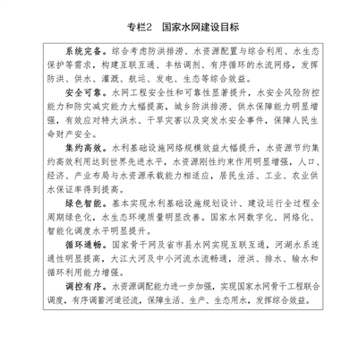 到2025年,建设一批国家水网骨干工程,国家骨干网建设加快推进,省市县水网有序实施,着力补齐水资源配置、城乡供水、防洪排涝、水生态保护、水网智能化等短板和薄弱环节,水旱灾害防御能力、水资源节约集约利用能力、水资源优化配置能力、大江大河大湖生态保护治理能力进一步提高,水网工程智能化水平得到提升,国家水安全保障能力明显增强。