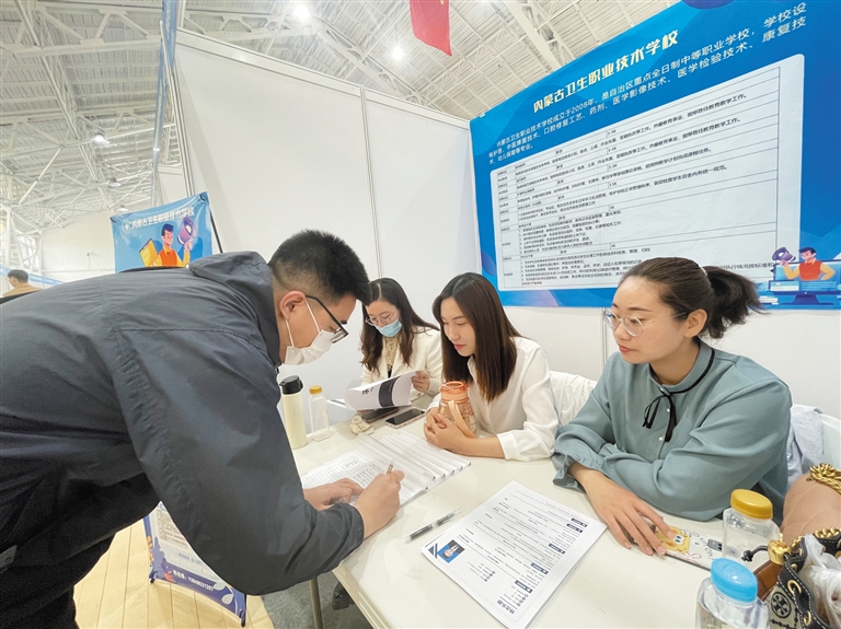 5月28日,求职者正在填写就业意向书。当日,自治区人力资源和社会保障厅在内蒙古师范大学启动“逐梦北疆 职引未来”公共就业服务进校园系列活动,210家用人单位现场招聘,提供岗位4051个。见习记者 杨林枝 摄