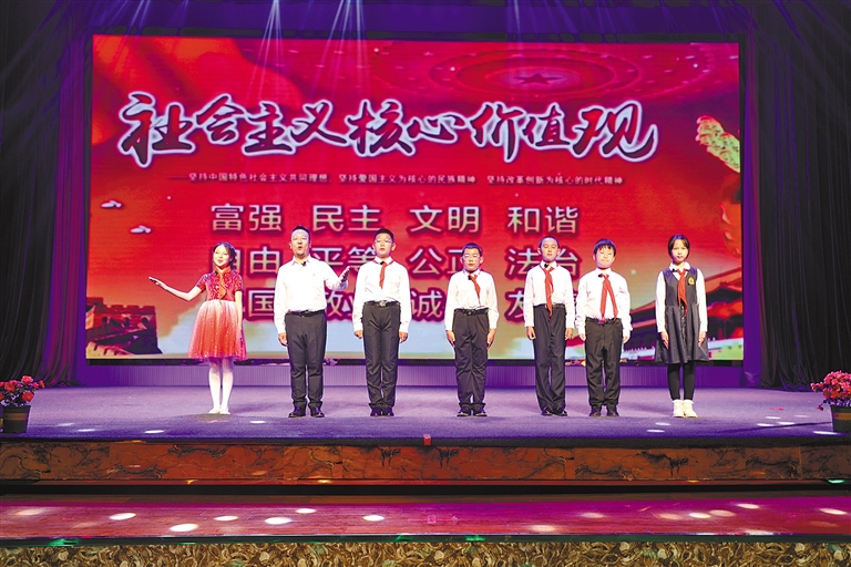​伴随着欢腾的少儿群舞《童心向党 强国有我》,展演拉开帷幕。古筝、扬琴演奏《听我说谢谢你》,竹笛演奏《画你》,表达了少年儿童向英雄致敬、向先进学习的决心;古典舞《唐宫夜宴》、京剧《珠帘寨》等精彩演绎,展现出少年儿童坚定的文化自信;朗诵《家风颂》《中华少年》《红色密码》,体现了少年儿童的爱国情怀。整场展演90分钟,精彩纷呈、特色鲜明,展现了新时代少年儿童多才多艺、童真活泼,感党恩、听党话、跟党走的美好形象。