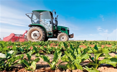 6月3日,乌拉特前旗乃马岱村村民正在高标准农田内劳作。在乌拉特前旗西小召8万亩高标准农田项目区内,玉米、甜菜、葵花等农作物首次采用黄河水直滤水肥一体化设备进行滴灌,既提高了作物水肥利用率,又减轻了农业用水压力。
