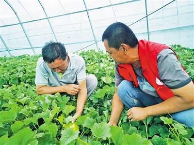 在巴彦淖尔市五原县胜丰镇新丰村的现代化种植大棚里,“土专家”菅清元正在查看白梨脆香瓜长势。“我发现不用药就可以防控白粉病,关键就在于防风口。经过不断试验,调整防风口大小控制棚内温度,最终解决了白粉病问题。”菅清元说,这个方法使白梨脆香瓜一茬变三茬,大大增加了产量。他不忘自己“土专家”志愿者的身份,将这个方法分享推广到全镇,使白梨脆香瓜平均亩产增加了1200斤。