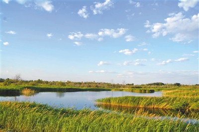 现代林业公园的建成就是当地生态惠民的缩影之一。该公园由东风林场万亩林地与沙海前进万亩梨园有效整合而来。绿树成荫的万亩梨园,清香四溢,郁郁葱葱的梨树上可爱的幼果挂满枝头;碧波荡漾的自然湿地,蒲草、芦苇随风摇曳起舞,各种水禽在水面上悠闲地游弋;8公里游园步道蜿蜒其中,沿途漫步,原生态的湿地、草地、沙地、林地、滩涂、水域养殖区及柽柳灌木林区美景尽收眼底……