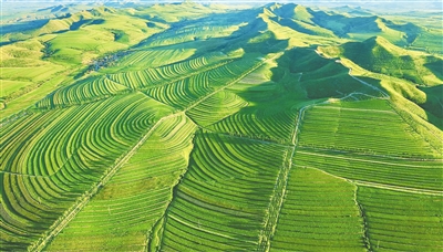 如今,萨力巴万亩梯田、丰收万亩梯田、新地万亩梯田在敖汉旗大地依次呈现,全旗梯田保存面积达120万亩,将中部丘陵地区“鸡爪子沟”划出的贫穷“等高线”变作群山出金、河流淌银的“米粮川”。