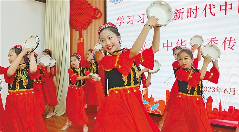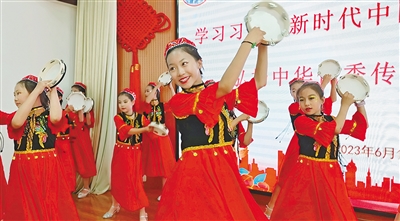 传承中华优秀传统文化,铸牢中华民族共同体意识要从孩子抓起。2018年,该小学成立首支“小小乌兰牧骑”,旨在通过开展文化志愿服务,提高孩子的人文素养,涵养爱国情怀,让中华优秀传统文化的种子在孩子心中生根发芽。至今,这支“小小乌兰牧骑”已经开展校内外文化志愿服务活动近百场。