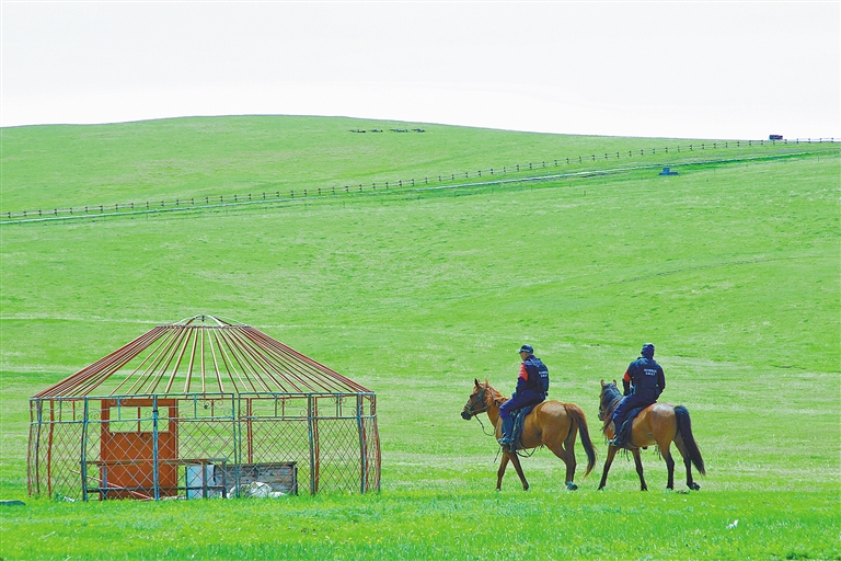 “我们去年巡逻时每人背个书包,专捡散落在草原的垃圾,可根本捡不过来。”石永志说,美丽的草原是大家共同的家园,需要用心呵护。最近,骑警队正积极协调景区、嘎查和相关单位,建立便民党员服务室,派专人值班。同时,利用景区广播宣传环保知识,引导游客不要碾压草场、乱扔垃圾,共同保护环境。