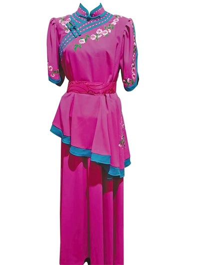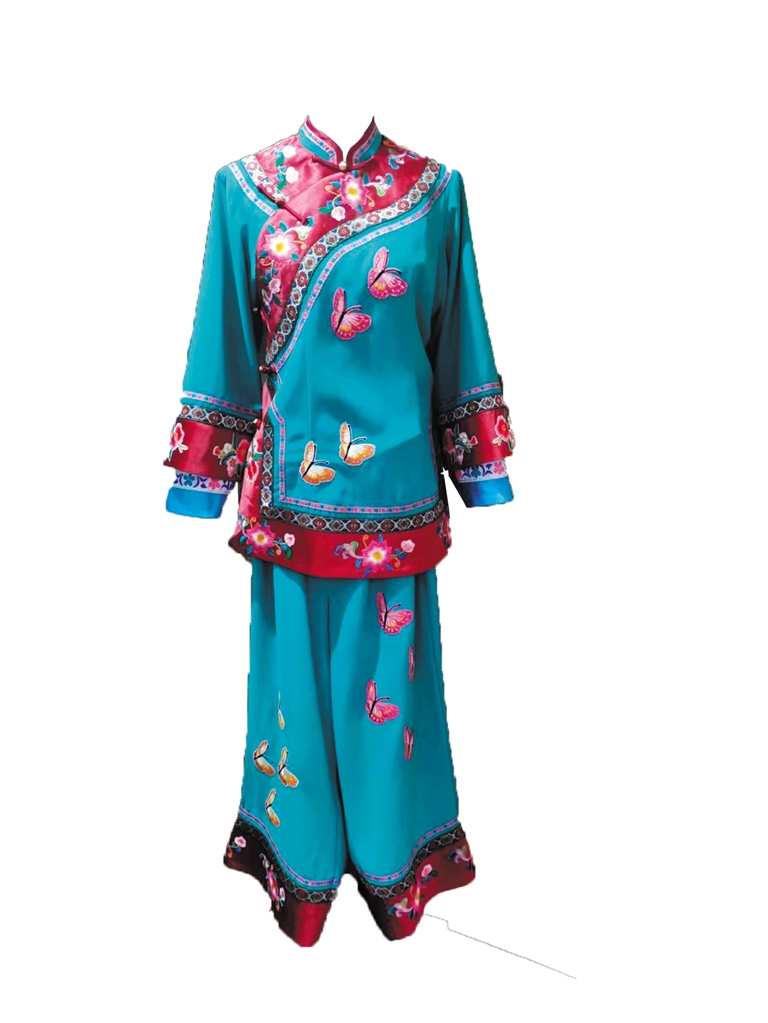“《走西口》是部清末民初的老戏,女主玉莲的戏服最早是红花袄、蓝裤子,后来面料换成了缎子,再后来,考虑到玉莲是新娘,就做成了禾服。现在,为了方便演出期间打理,我又把料子换成了重磅纱,非常受演员欢迎。”秦果菊说,“要在保持传统的基础上创新,不管面料、样式怎么变,玉莲的上衣款式永远是偏襟的,就这一点,就突出了那个年代的味道。”