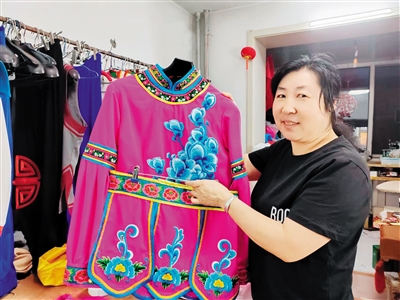 现在,秦果菊的私人定制作坊虽然店面不大,只有她和老公两个人在忙碌,但是,她的名气已经传到了陕西、山西、河北等二人台流行的地方,经常有这些地方的二人台专业剧团和爱好者找她定制戏服。