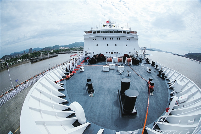 7月3日在浙江舟山某军港拍摄的中国海军“和平方舟”号医院船。当日,中国海军“和平方舟”号医院船从浙江舟山某军港码头解缆起航,远赴基里巴斯、汤加、瓦努阿图、所罗门群岛、东帝汶等5国执行“和谐使命-2023”任务。这是“和平方舟”号医院船第9次执行“和谐使命”任务,也是中国海军舰船首次访问基里巴斯、所罗门群岛并开展人道主义医疗服务。