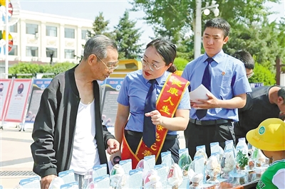 近日,鄂尔多斯市鄂托克旗人民检察院在旗乌兰镇乌兰广场向群众宣传禁毒知识。检察人员通过展示仿真毒品模型、发放宣传资料、现场答疑解惑,增强群众的识毒、防毒、拒毒意识。本报记者 郝佳丽 摄