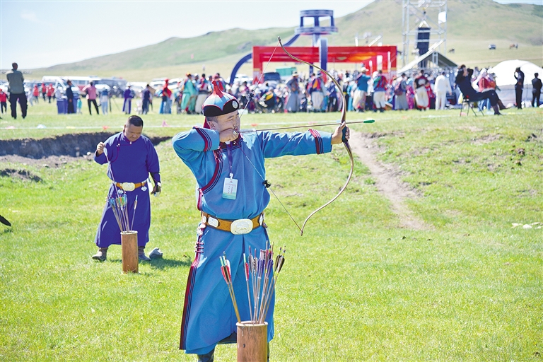 盛夏的赤峰市阿鲁科尔沁草原,白云飘荡,万顷碧绿。近日,在全球重要农业文化遗产阿鲁科尔沁游牧系统核心区巴彦温都尔苏木浑都伦夏营盘,一场沉浸式畅览“游牧记忆”精彩上演,展现出独特的地域特色和民族风情。