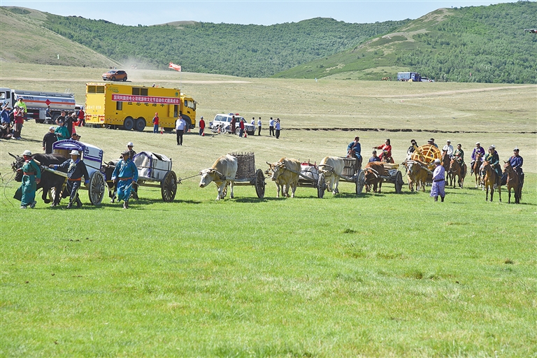 阿鲁科尔沁草原游牧系统是草原游牧文化的发祥地。此次活动以游牧转场、国家级非物质文化遗产代表性项目阿日奔苏木婚礼为连接点,表演贯穿4个场景、5个展区,全方位展示“逐水草而居”的传统生产生活方式,体现了尊重自然、保护自然、人与自然和谐共生的发展理念。