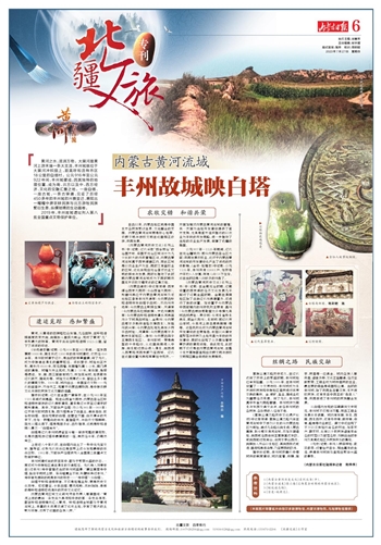 丰州城建成后的数百年中,都处于繁荣兴盛的状态,一度还成为中原地区通往漠北的交通枢纽。元代诗人刘秉忠在《过丰州》诗中曾描述当时丰州城盛景:“晴空高显寺中塔,晓日平明城上楼。车马喧阗尘不到,吟鞭斜袅过丰州。”诗中首先提到的就是丰州的标志——“寺中塔”(今白塔)。