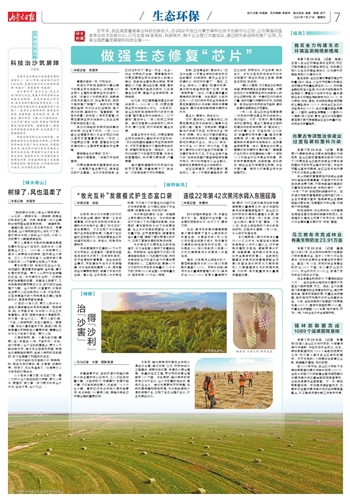 科技创新是防沙治沙的利器。加强基础研究与关键技术研发,以科研院所和技术推广单位为依托,开展联合攻关;通过防沙治沙和生态建设工程项目的实施,带动防沙治沙技术的重大创新、集成和应用;利用现代技术的精准识别、实时监测和基于大数据的因害设防、精准施策,以科技助力防沙治沙,筑牢绿色生态屏障。