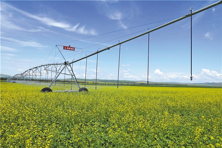 上库力农牧场公司进一步整合水利资源,优化设备配置,多措并举全力开通农田水利灌溉设备,有效灌溉面积达到11.9万亩。农业技术人员全面踏查了解作物长势和土壤墒情,适时适量进行合理灌溉,试验示范推广水肥一体化新技术,让水分养分均匀适时适量浸润作物根系发育生长区域,满足作物在生育关键期“吃饱喝足”的需要。