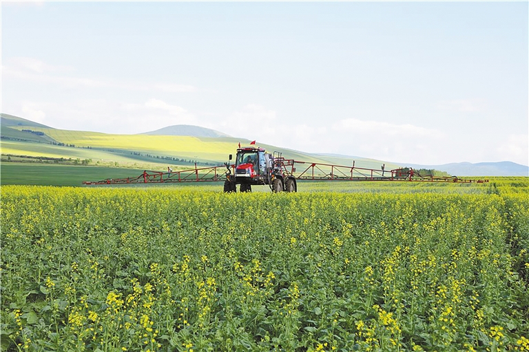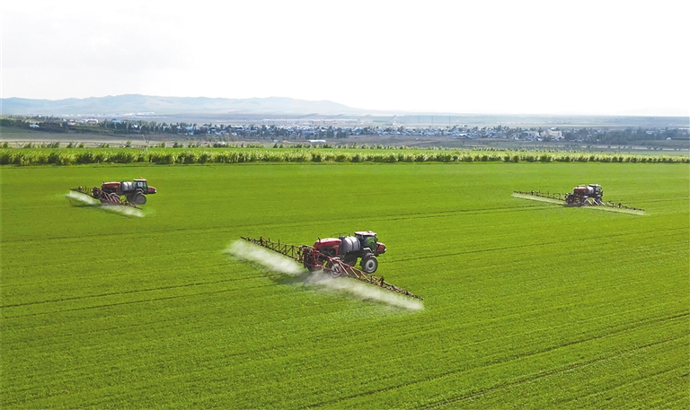 上库力农牧场公司采取现代化农机中耕深松、施肥灭草、追肥化控、防病健身等举措,抓实农业生产科学化、精细化夏管工作,确保作物安全成熟。该公司科学合理调整施肥灭草配方,推广实施“底肥减量+生长期适时适量追肥”种植技术,根据作物需肥情况增减喷施叶面肥。