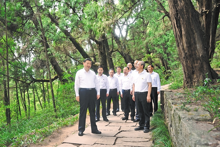7月25日至27日,中共中央总书记、国家主席、中央军委主席习近平在四川考察。这是25日下午,习近平在广元市剑阁县翠云廊考察。 新华社记者 谢环驰 摄