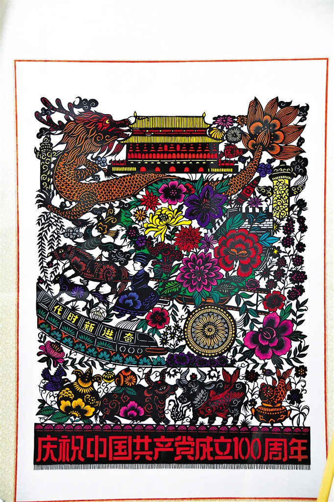 其中,剪纸作品《家乡美》在2017年中华文化促进会“华山风骨,富美临渭”剪纸展上荣获金奖;2020年,在北京·渭南“大爱无疆”全国剪纸展上,她的剪纸作品《宝贝回家》荣获金奖。2021年初,为了庆祝建党100周年,她创作了《庆祝建党100周年》剪纸作品,整幅作品大小约四尺,作品中有各族群众、莲子、牡丹等,通过一个个寓意美好的元素,表达祝愿祖国繁荣昌盛之意。