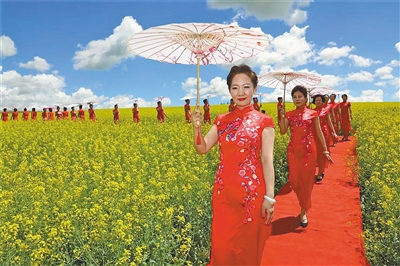 每年油菜花盛花期,呼伦贝尔农垦与地方联合举办油菜花节、油菜花季等旅游节庆活动。期间,通过旗袍秀表演、摄影大赛、自行车赛、越野车拉力赛、邀请名家书画展览等活动,吸引更多游客赏花观景,带动文旅农产业融合。