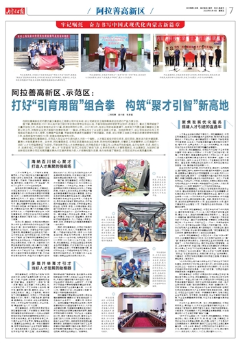 “近3年来,阿拉善高新区、示范区柔性引进了中科院院士、高校教授等紧缺人才300余人和宁夏医疗领域著名教授、博士50余人,刚性引进急需紧缺优秀教师87人、‘智汇驼乡·鸿雁归巢’高学历硕士研究生14人。打造包括人才就业在内的‘六大平台’,建立了与甘肃民勤、宁夏银川、内蒙古赤峰等区域人才合作体系,引进产业工人1万余人,开展技能培训2.5万人次,有效解决企业缺少技能人才的燃眉之急。未来,我们将聚焦产业发展导向,最大限度释放人才政策红利,推动各类人才引育链、平台链、服务链融合发展。”阿拉善高新区党工委委员、基层党的建设办公室主任任新福说。