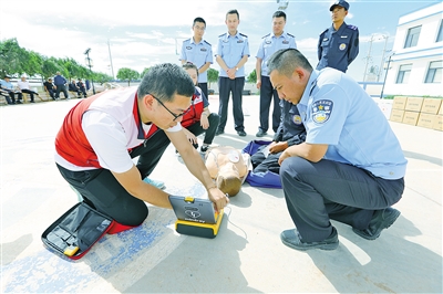 近日,“边境警务+红十字‘救’在身边”暨“红十字博爱家园进边关”项目启动仪式在乌兰察布边境管理支队江岸边境派出所举行。现场,红十字会工作人员开展了应急救护培训,并为护边员、红色堡垒户和边境群众代表发放了急救箱和家庭应急救护箱。 见习记者 高辉 摄