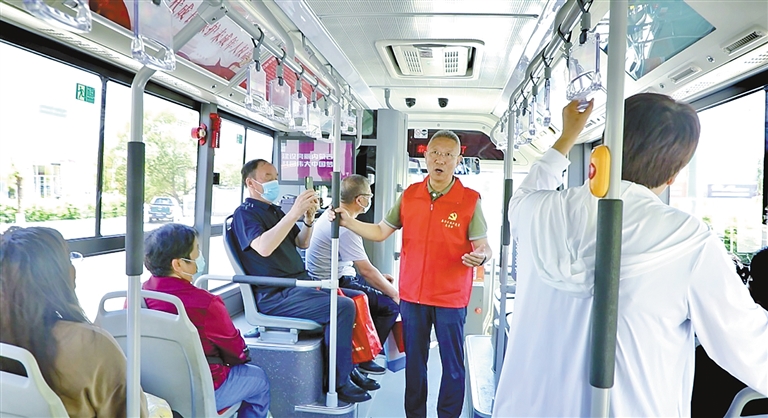 近日,乌兰察布市集宁区的党员干部和入党积极分子化身“流动先锋”,走上公交车,用接地气的语言宣讲党的方针政策、解答民生热点问题,为广大居民群众送上暖心服务,在实践中践行初心使命。