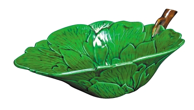 吉州窑结合当地材料和民俗特色,融合当地需求的特点,就地选材烧制出黑釉、褐釉、青釉、绿釉、乳白釉等瓷器,对我国陶瓷史产生了深远的影响。绿釉瓷器是吉州窑烧造的重要产品之一。绿釉是低温釉瓷,先在低温窑炉中预烧,出窑后用铅为熔剂,氧化铜为着色剂进行施釉,再施绿釉二次入窑烧造,并控制窑温使之在氧化焰下将所施的釉形成纯绿色。