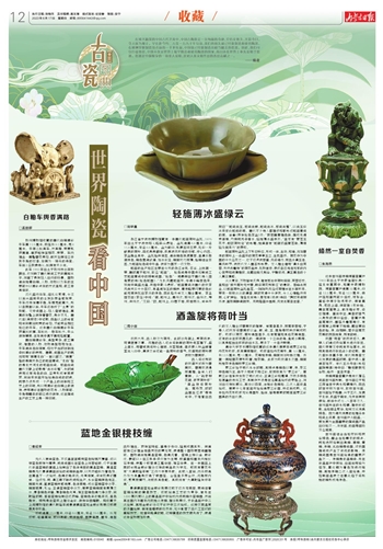 古人将这别致的饮酒方式称为碧筒饮。碧筒饮浪漫而高雅,备受人们青睐。从“疏索柳花碗,寂寥荷叶杯”“酒盏旋将荷叶当。莲舟荡,时时盏里生红浪”等诗句中,不难看出古代的文人雅士对碧筒饮的推崇。爱莲者甚多,而莲季苦短,于是人们只好将碧筒杯以金、银、瓷、玉、犀角等材质仿制成吸杯。吸杯以荷花、莲叶造型居多,也有莲蓬和其他花瓣造型。还有的会在杯底圆孔的一侧装饰一个立体的龟、鱼或小鸭等,以其身躯挡住杯底的出水孔,更多了一分自然野趣。
