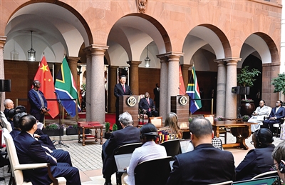 习近平强调,后天,我将和拉马福萨总统共同主持中非领导人对话会,这将是新冠疫情以来中非元首首次集体面对面会晤。我们期待同其他与会非洲国家领导人一道,擘画中非团结合作新蓝图,为中非全面战略合作伙伴关系发展注入新的强劲动力。