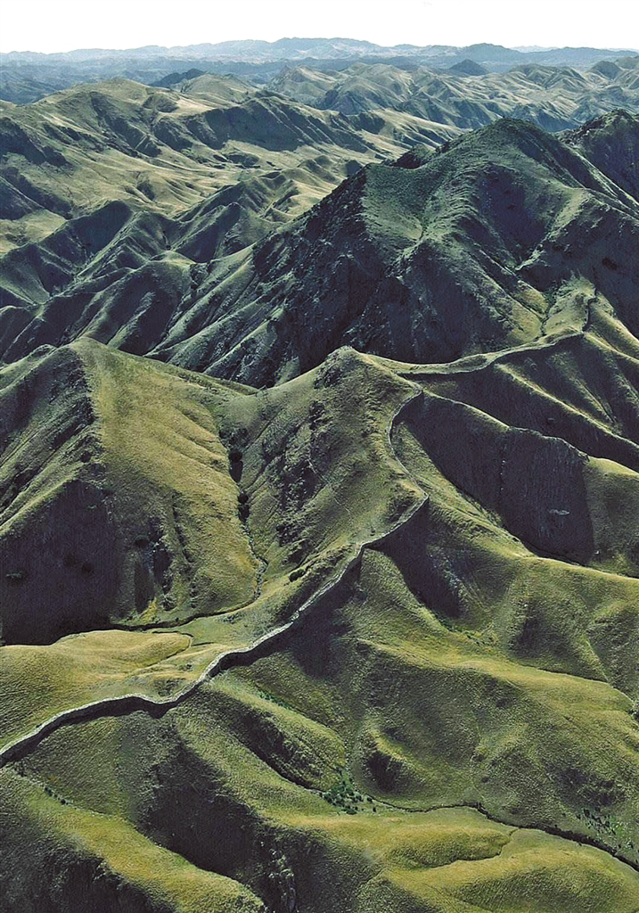 如果把视野再展开一些,阴山横贯华北,东抵东北,西及西北,是名副其实的我国北方天然屏障。拆开来看,大青山以东,山脉陆续降至海拔1500米以下,通常称阴山山地,主要有蛮汉山、灰腾梁、凉城山、桦山和大马群山等,多为低山丘陵,地形紊乱,主脉不清,山向多变,一直延伸至晋北和冀北山地,并与燕山山脉和大兴安岭相望;向西,狼山余脉延伸至阿拉善境内,形成哈鲁乃山、罕乌拉山、巴彦乌拉山和雅布赖山,由东北向西南插入,将阿拉善高原分为东西两大块,并分隔了乌兰布和、巴丹吉林和腾格里三大沙漠,使之未能连成一片。