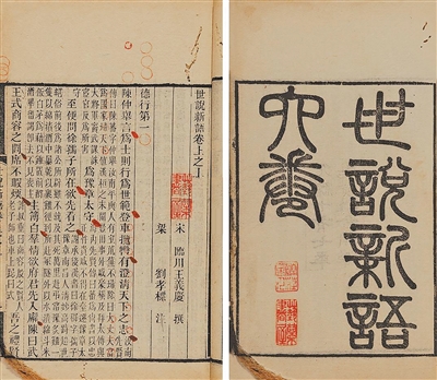 《世说新语》由南朝宋临川王刘义庆撰,梁代刘孝标注,是魏晋南北朝时期“笔记小说”的代表,也是我国最早一部文言志人小说,主要记载了东汉后期到魏晋间一些名士的言行与轶事。目前流传下来的共3卷36门,有“德行”“言语”“识鉴”“贤媛”“规箴”等,所涉人物1500多个,无论帝王将相还是隐士僧侣,都气韵生动,传递的特立独行的“魏晋风度”有如光风霁月,令无数读书人心向往之。清初杭州诗人“西泠十子”之一的丁澎称:“宏长风流,隽旨名言,溢于楮墨。故通人雅彦,裙屐少年,皆喜观而乐道之。”