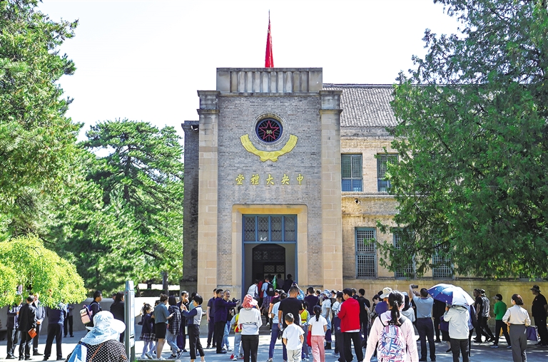 8月29日,在陕西延安,游客参观杨家岭革命旧址的中央大礼堂。今年以来,陕西延安红色旅游持续火热。游客纷纷走进红色旅游景区和纪念馆,感悟革命历史、传承红色基因。截至目前,延安革命纪念地管理局局属13个文博开放单位今年已接待游客超680万人次。近年来,延安市不断优化红色旅游产品供给,完善红色旅游教育常态化工作机制,推动文旅融合高质量发展。 新华社记者 邹竞一 摄