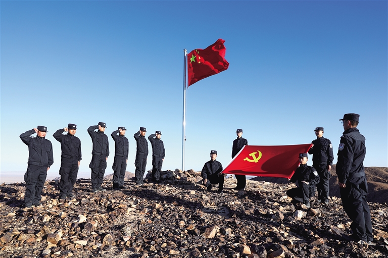 2022年以来,阿拉善边境管理支队积极通过不断扩大边境一线党组织覆盖、提升党员履职能力建设,通过组织党员干部、牧民群众开展边境一线徒步踏查、“党建+生态”植树护绿行动、线上党员学习讨论等系列活动,不断增强边境地区党员的归属感、责任感、荣誉感。同时,该支队经常邀请党校老师到边境一线开展“送学、送教、送红色观影、送党建图书、送党的声音”的“五送”活动。同时,通过定期组织民(辅)警、护边员党员在边境前沿开展“升国旗”“重温入党誓词”“学党史·唱国歌”等主题党日活动,打造“国旗下宣讲、党史故事会、夜校小课堂”等教育载体,激发了广大民(辅)警、群众护边员无限的戍边热情,有效凝聚党政军警民强边固防合力,有力确保了党中央决策部署的落地生根。