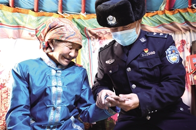 宝泉是阿拉善边境管理支队塔木素布拉格边境派出所的辅警。今年2月,为强化边境管理工作,内蒙古边检总站首批辅警分配至基层单位开展工作,北疆楷模尼玛老人的孙子就在其中。为便于工作开展,经过支队党委研究,宝泉被分配至他的家乡——塔木素布拉格苏木恩格日乌苏嘎查,正式成为一名驻村辅警,以另外一种形式接过了奶奶、父亲的守边接力棒。据了解,在阿拉善边境管理支队,像宝泉这样的辅警共有65人,他们全部下沉至边境一线,在基层派出所、检查站贡献着青春,成为维护祖国北疆安全稳定屏障的重要力量。