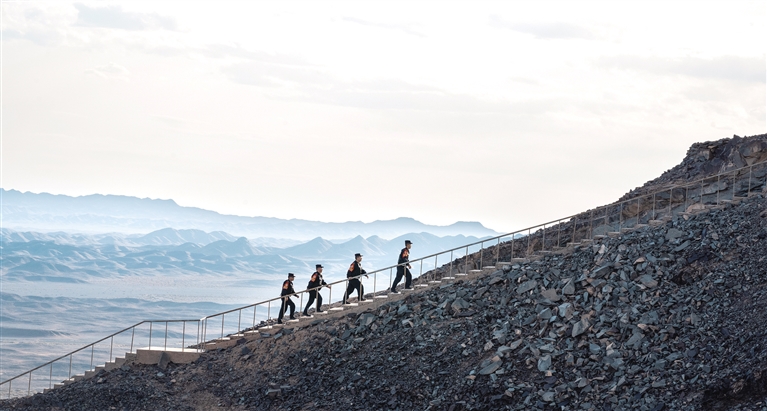 “今日巡逻边境线24公里,未发现异常情况。”初秋明媚的阳光播洒在大漠戈壁,临近中午,吉呼楞站在高高的沙丘上,向边境派出所报告当日巡逻情况。