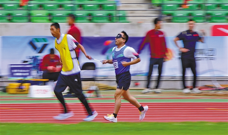 赛场上,残疾人运动员们失败了再挑战、摔倒了再站起来,没有人肯轻易言败。一次次艰难跳跃、一次次激情冲刺,他们把坚强不屈、永不放弃的进取精神定格为感人瞬间。