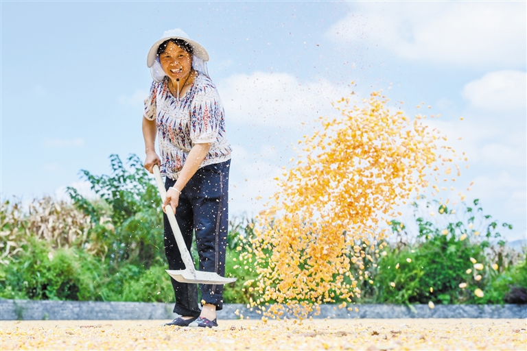 9月5日,村民在贵州省毕节市百里杜鹃管理区中塘村广场晾晒农作物。秋日时节,各地农民抢抓农时忙碌在田间地头。 新华社发