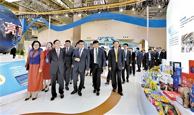 开幕式前,何维和阿玛尔赛汗在张延昆等自治区领导的陪同下来到敕勒川国际会展中心,参观了内蒙古馆、蒙古馆、加拿大馆、陕西馆、广东馆等展厅,不时驻足观看,详细了解参展情况。