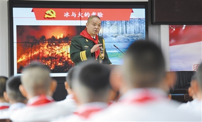 近日,呼和浩特市赛罕区金桥小学邀请灭火英雄黄国才走进校园为同学们讲述灭火的英雄事迹。宣讲中,黄国才为同学们讲述了自己在大兴安岭的灭火经历,为数百名学生上了一堂生动的爱国主义教育课。本报记者 王磊 摄
