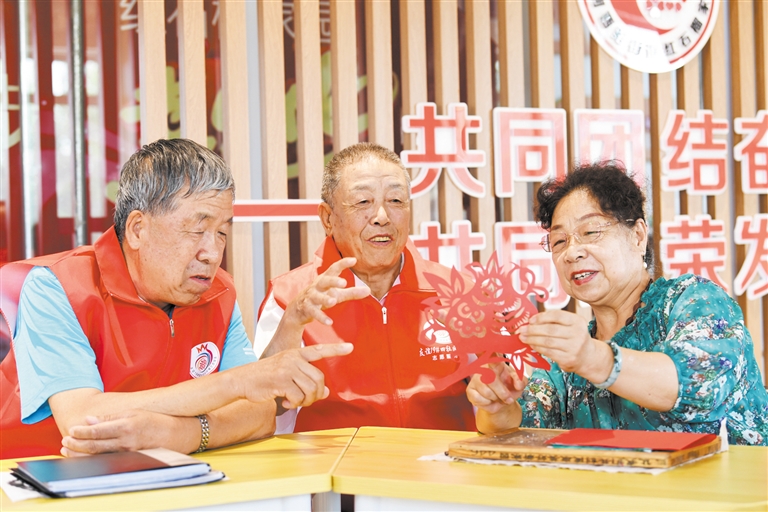 9月8日,包头市昆都仑区友谊19小区社区党群服务中心红石榴宣讲团成员与社区居民一起剪纸。该社区在居民活动中心打造了红石榴家园,成立红石榴宣讲团,为各族群众交往交流交融提供平台,依托红石榴家园开展文艺演出、志愿服务等活动。截至目前,昆都仑区共打造112个红石榴家园,各族群众通过红石榴家园形成了共居共学、共建共享、共事共乐的良好氛围,增强了对中华民族的认同感和自豪感。