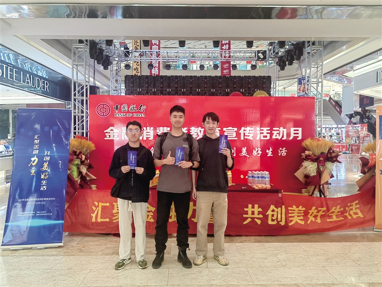 中国银行内蒙古分行走进大型集中消费商圈,通过发放宣传折页、趣味知识问答等方式,向社会公众宣传讲解预防电信诈骗、金融消费者八项权利、珍爱信用记录、保护个人信息安全等金融知识。