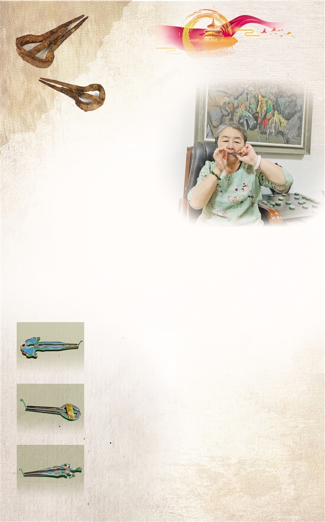 自治区级非遗项目口簧音乐代表性传承人霍秀华轻轻拿起一支口簧衔在口中,随着她右手手指不停地拨振簧片,美妙的声音袅袅而出,仿佛是穿越时空,从远古传来的千年回音,悠远而绵长。