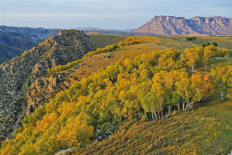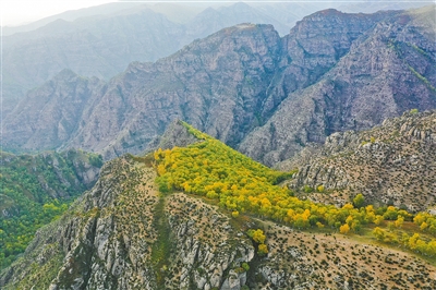 秋日里,呼和浩特市大青山层林尽染、色彩斑斓、奇峰耸立,自然景观独特峻美,令人流连忘返。