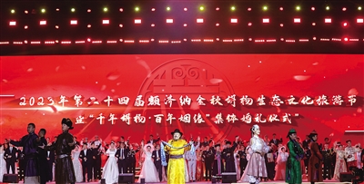 “千年胡杨·百年姻缘”集体婚礼。