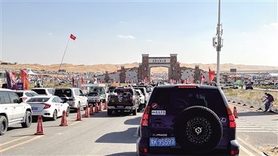 在巴丹吉林沙漠,风沙旋起、马达轰鸣,越野车如脱缰的野马爬坡、腾空、急转……阿拉善右旗作为本届第18届“越野e族”英雄会的举办地,短短几天就吸引了60多个车队、2万多辆车、6万余人。场地越野挑战赛、超级单车挑战赛、T3挑战赛等赛事与“夺宝奇兵”、非遗那达慕大会、沙漠绿洲音乐节等丰富多彩的活动相结合,为游客们带来一场极具地方特色的文化盛宴。