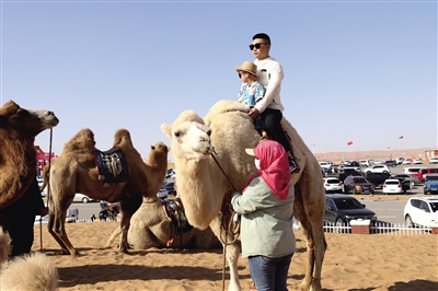 游客体验骆驼骑乘。杨学荣 摄