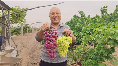 葡萄种植户分享丰收的喜悦。 本报记者 牟野 摄