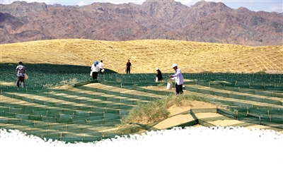 阿拉善右旗曼德拉苏木板滩井灌区曾是一个遍野荒沙的不毛之地,如今这里不仅建成了50多万亩人工梭梭林,而且通过发展梭梭苁蓉产业,实现了沙地变绿、农牧民增收的双赢,走出了一条符合当地实际、突出特色、可持续发展的特色沙产业之路。