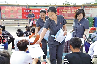 近日,呼和浩特市新城区人民法院保合少人民法庭干警来到保合少镇水泉村,开展“法润乡村”司法服务活动。他们针对农村土地流转、民间借贷等涉农领域热点问题,结合有关规定和具体案例,进行了深入浅出的讲解,提升了村民法治观念。本报记者 李晗 摄